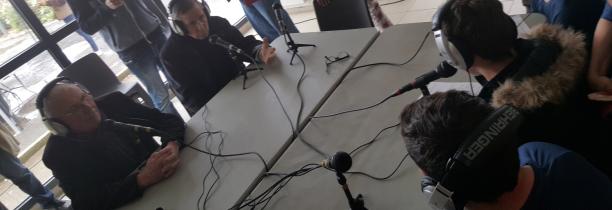 En compagnie d'André Grimault, maire de la commune délégué de La Pommeraye, il a accordé un entretien à un groupe de jeunes français.